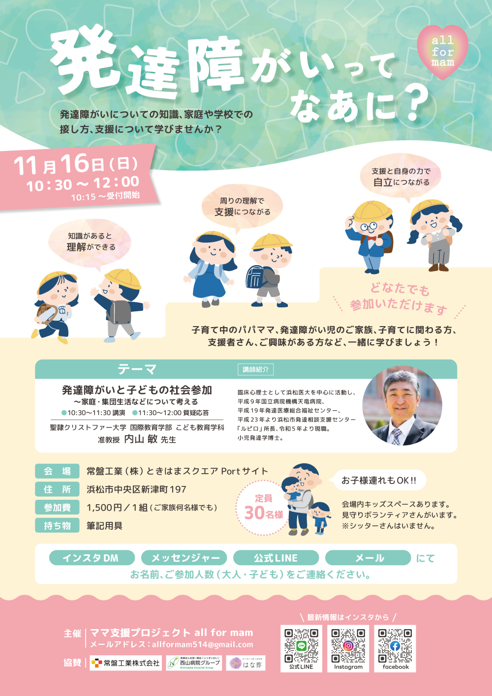 聖隷クリストファー大学 国際教育学部 こども教育学科 准教授 内山敏先生がご講演くださいます✨